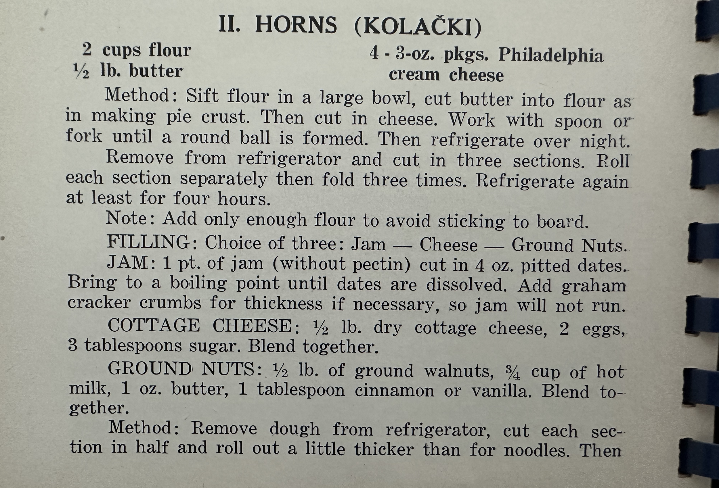 Mix cream cheese and butter until smooth. Add flour slowly until well blended. Shape into a ball and chill overnight or for several hours.
